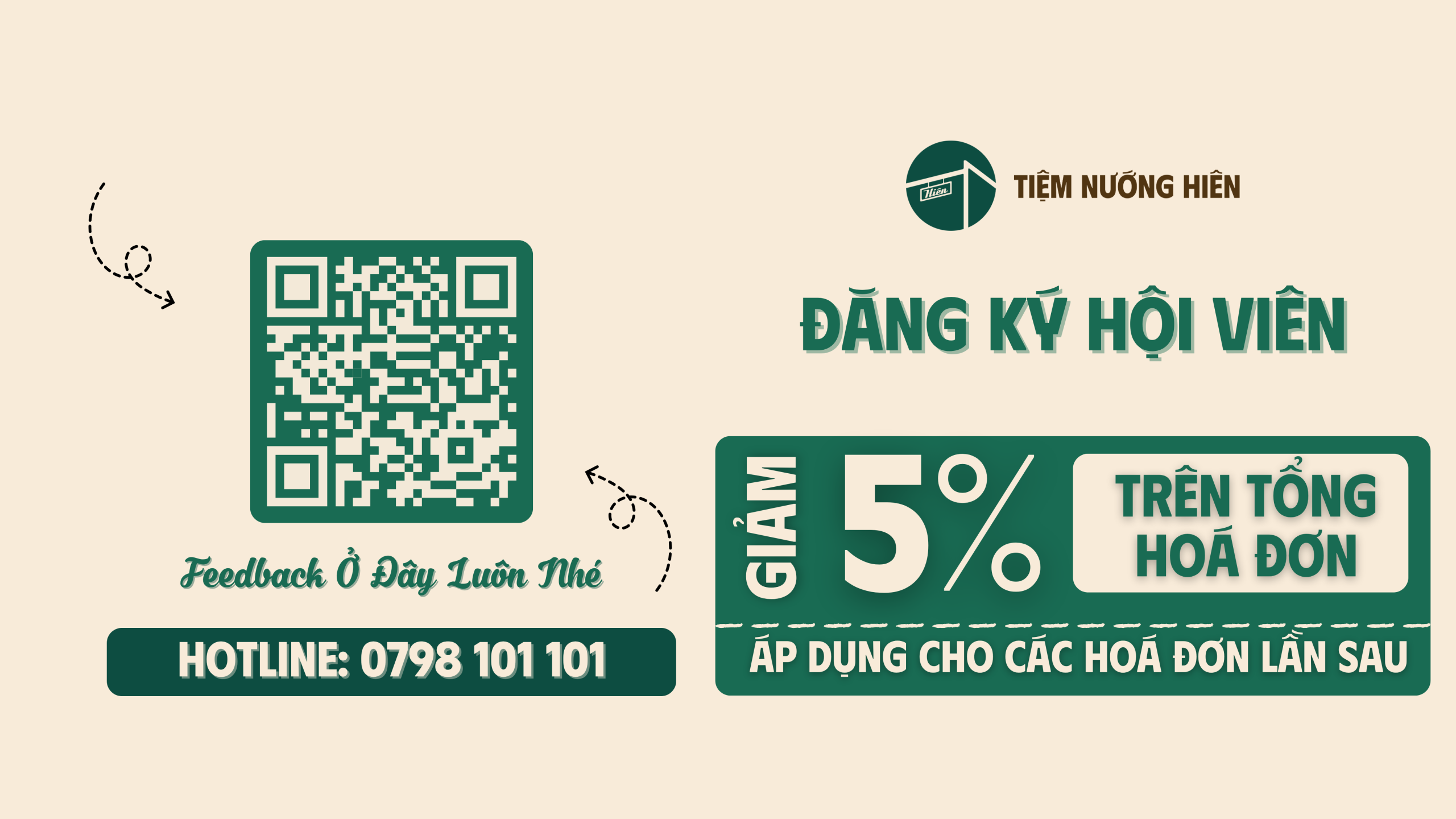 🔥 Trở thành hội viên Tiệm Nướng Hiên hôm nay để vừa ăn ngon – vừa nhận quà mỗi lần ghé Hiên nhé!